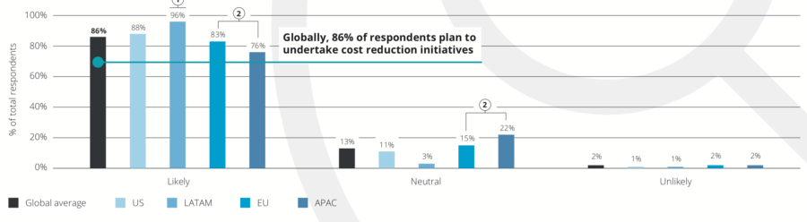 Figure 1. Likelihood of cost reduction over next 24 months (Source: Deloitte, "Thriving in uncertainty in the age of disruption).