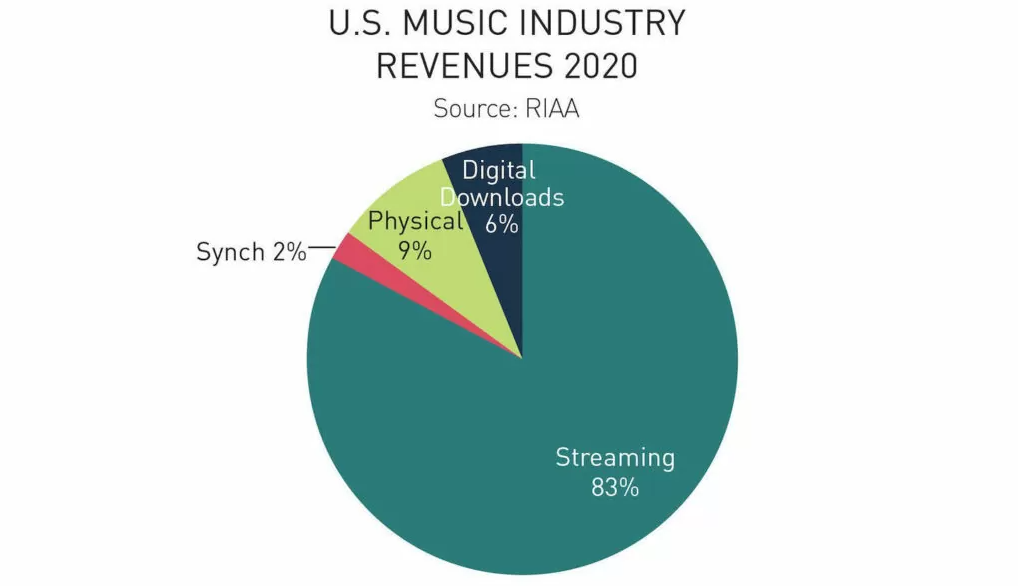 With the introduction of new technology and artificial intelligence, the music industry is only expected to grow with artists and various companies adapting to changing times. A company called Jukebox artificial intelligence has been working with music streaming services to help them better understand their customers. As seen in the graph below, streaming is the number one source of revenue for the US music industry in 2020. With the popularity of streaming, Jukebox uses machine learning algorithms to study user behavior and recommend songs that they might like. This company is just one example of how AI is being used in the music industry to improve the experience for both artists and listeners.